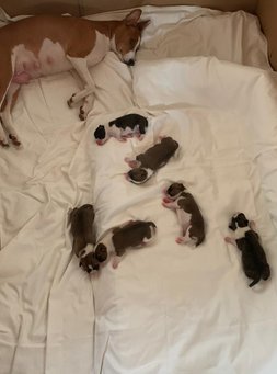 Die Mutter des Wurfes ist unsere dreifärbige, aus unserer Zucht stammende, Cocobella´s Dora. Sie ist ein absolut liebenswerter und lustiger Hund, liebt unsere Kinder. Da sie richtig afrikanisches Blut in ihrer Linie trägt, hat sie auch einen gut ausgeprägten Jagdtrieb und ist einfach etwas ganz Besonderes. Sie hat alle erforderlichen Gesundheitsuntersuchungen, hat sich erfolgreich auf Ausstellungen gezeigt und hat bei einem Basenjirennen den 2. Platz belegt.